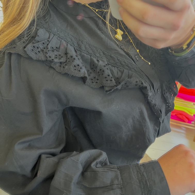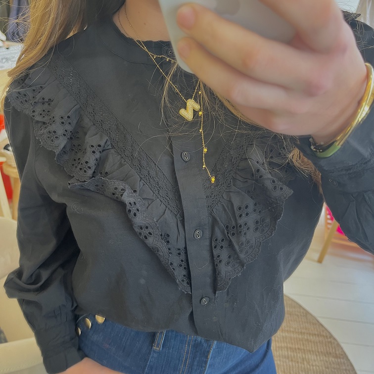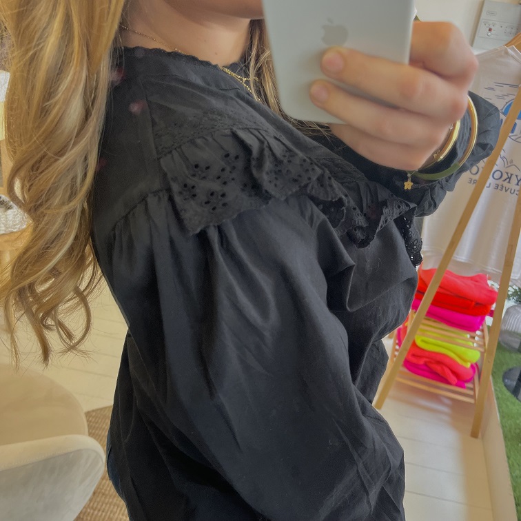– blouse noire à volant