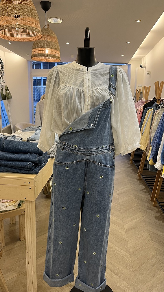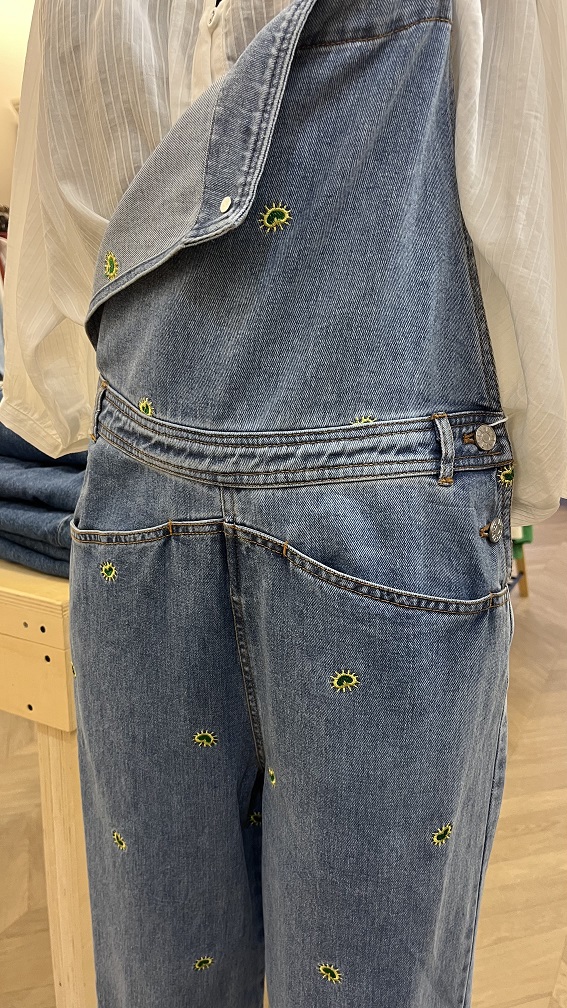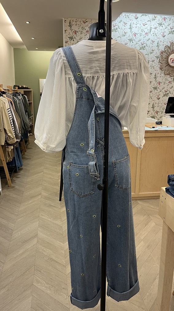 salopette en jean avec broderie.
